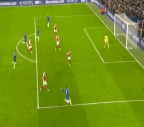 第83分鐘,切爾西角球攻勢,阿森納后防線一片混亂,加納喬禁區外凌空掃射得手,完成梅開二度好戲,藍軍再扳一球,2-3!
